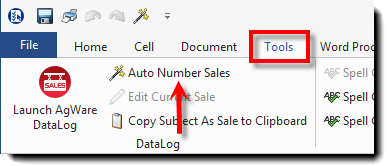 The upper part of a sale sheet is shown after the "AUTO NUMBER SALES" used and displaying: