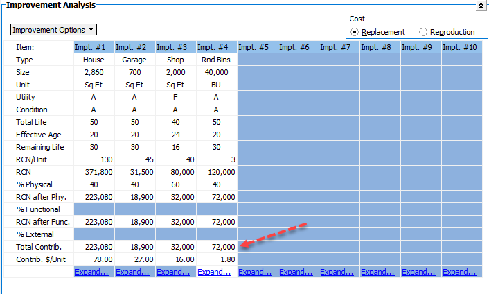 Once the improvement contribution is quantified, splitting that amount among each building is next. For some property types the market may view buildings in a cumulative sense, i.e., percent contribution versus the total sale price. However, as building contributions accelerate to a point where they become a major part of the total sale price, allocation to each building and analysis of age, condition, utility, etc., becomes necessary.