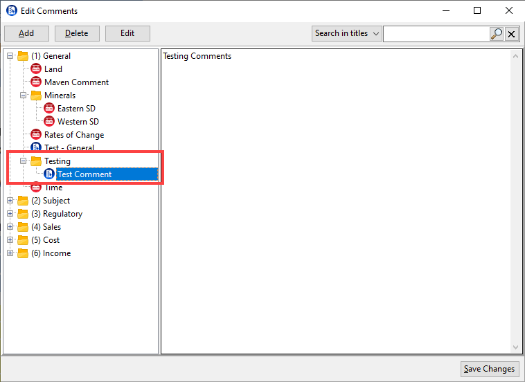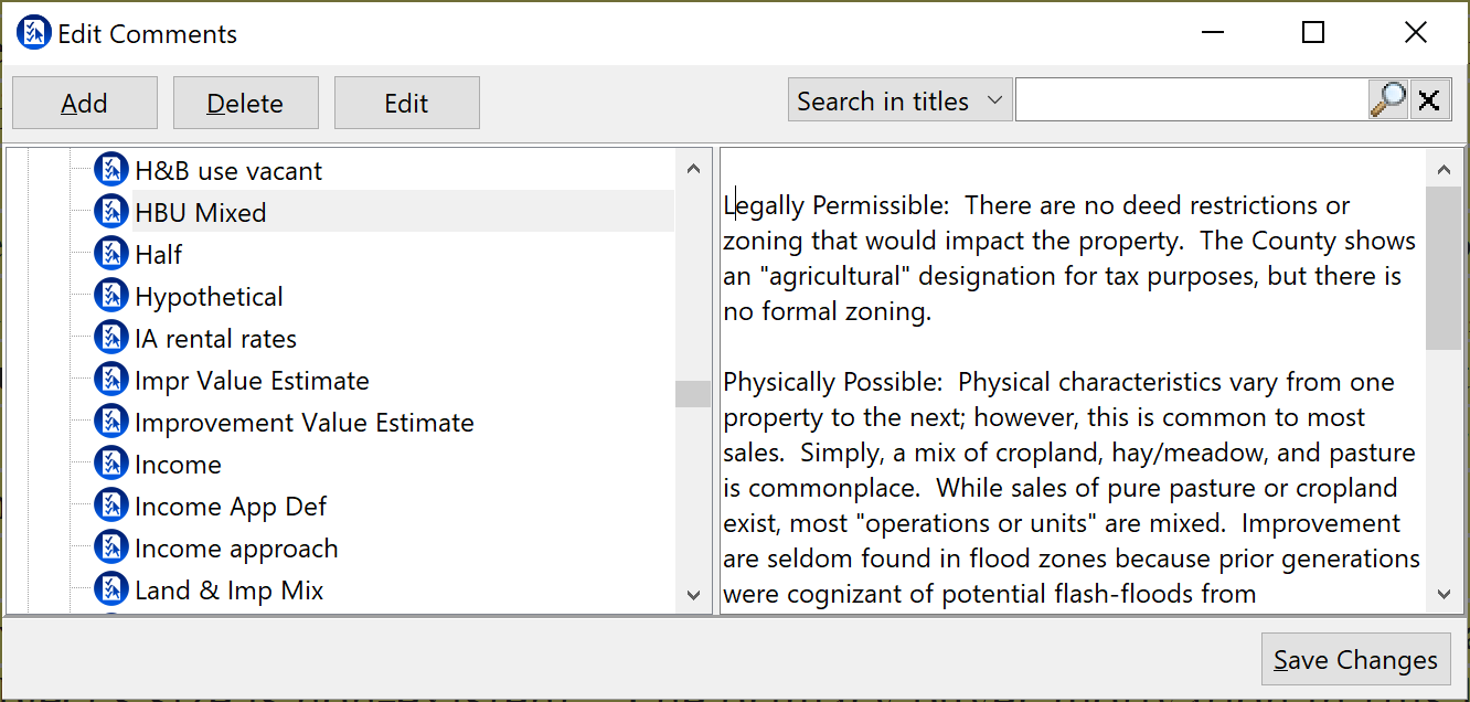 Edit comments allows you to add, delete or edit any saved comments.