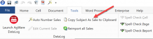 To copy the subject as a sale, open the report and click on the tools tab and select Copy Subject As Sale to Clipboard.