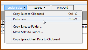 Click the Transfer Sales drop-down list and choose Paste Sale.
