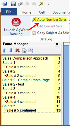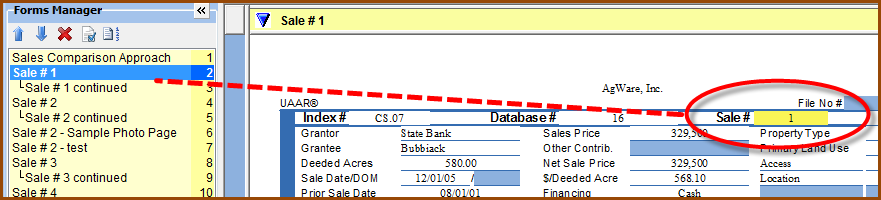 - Click the Auto Number Sales button; the sales are now numbered 1-2-3-4-5 in top to bottom order. This sale number is used internally for only this ClickFORMS report and it clearly identifies one sale from another. Nothing in DataLog is affected.
