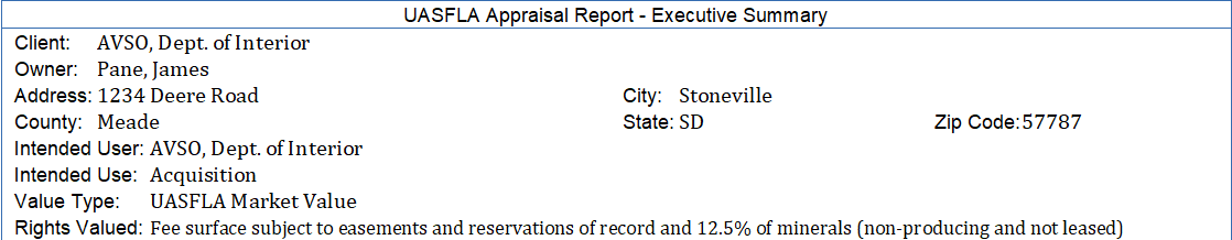1. Most of this page "auto-fills" from other sections within the report. A few items have been added for UASFLA which must be manually entered and shown with green box within in this explanation.