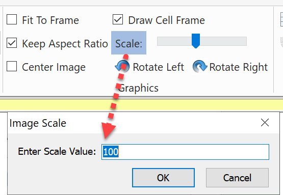 - The Scale button is disabled if the Fit To Frame option is selected.
