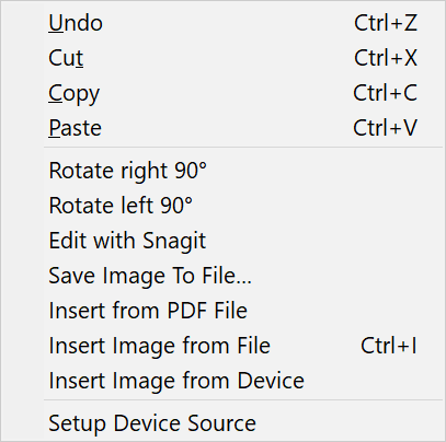 - To insert an image directly from a scanner or a camera, choose Insert Image from Device. The device must be set up first.
