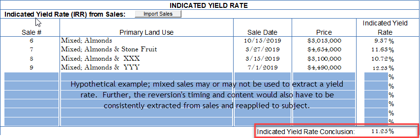 Any Sale’s income can be displayed for “Yield Capitalization” (shown below) after analyzing each sale’s cash flow in the Income Analysis in DataLog, then selecting “Discounted Cash Flow” and entering the appropriate income and timing. Once into the database, they can be imported as part of each sale record, then summarized in the Yield Capitalization Summary (the second chart below). The actual subject "yield capitalization" begins on the third chart or second page of the form-set.