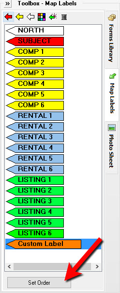At the bottom of the Map Labels window is a button used to set the order of labels. After Clicking Set Order, click on the label that needs to be re-ordered and use the up/down arrows to adjust.
