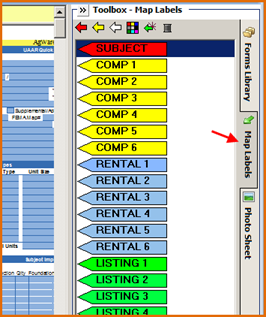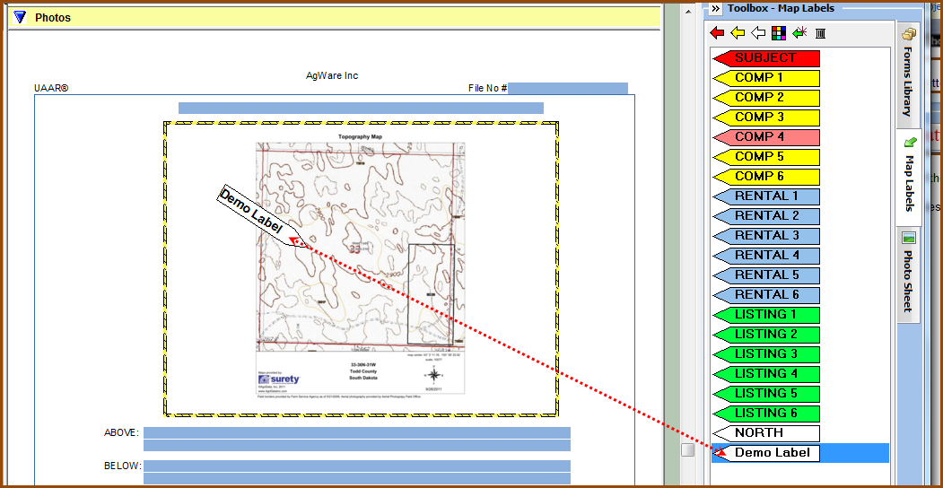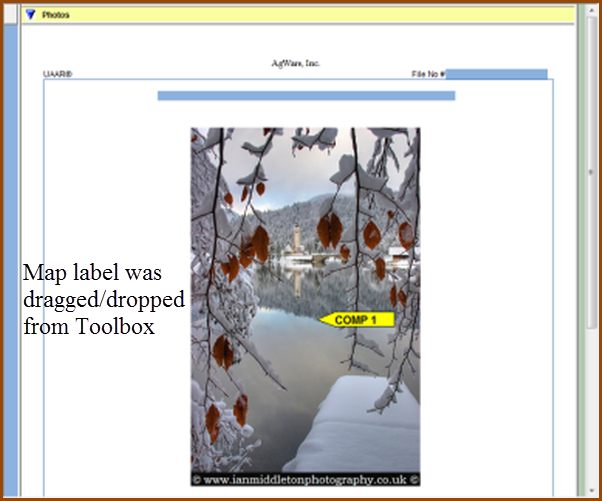 To affix map labels to photo and exhibit pages use the drag/drop method.
