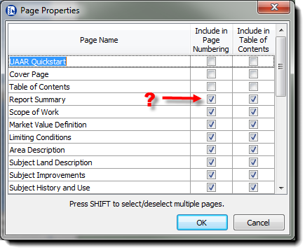 – No special page numbering is necessary, however, confirm that the pages to be omitted from either the table of contents and/or page numbering have been check-boxed accordingly in the Page Properties dialog box.