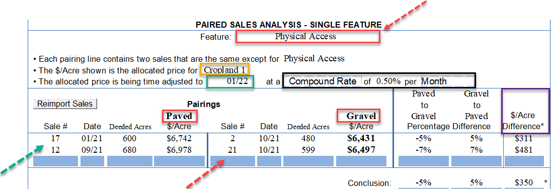 -5% 5% $311 ------ > conclusion of $350/acre after consideration of both pairings above.