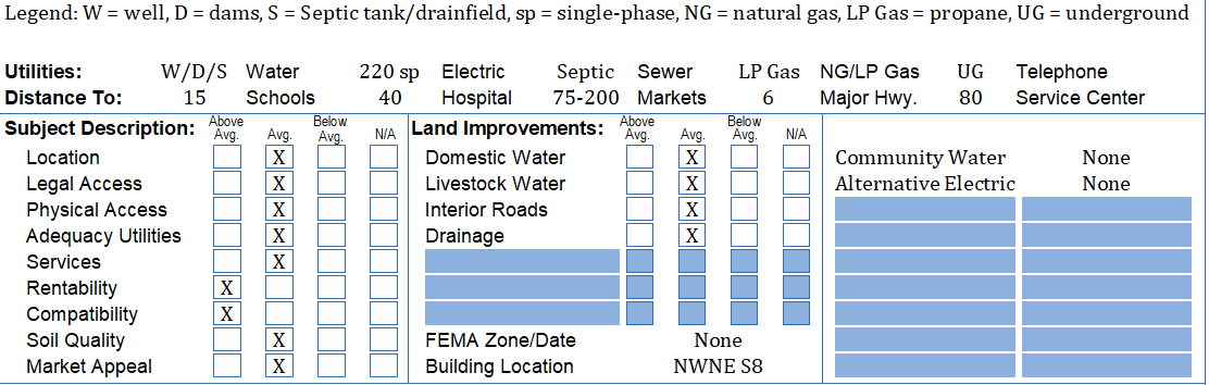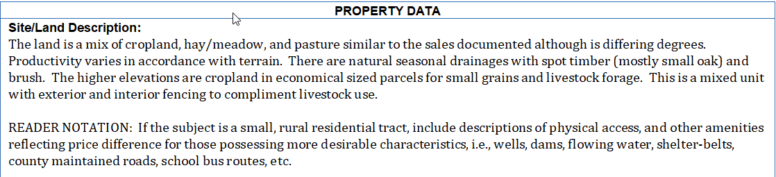 1. Site or Land Description: ("site" typically for rural residential types and "land description" for larger acreages).