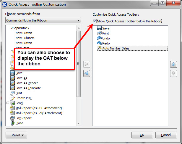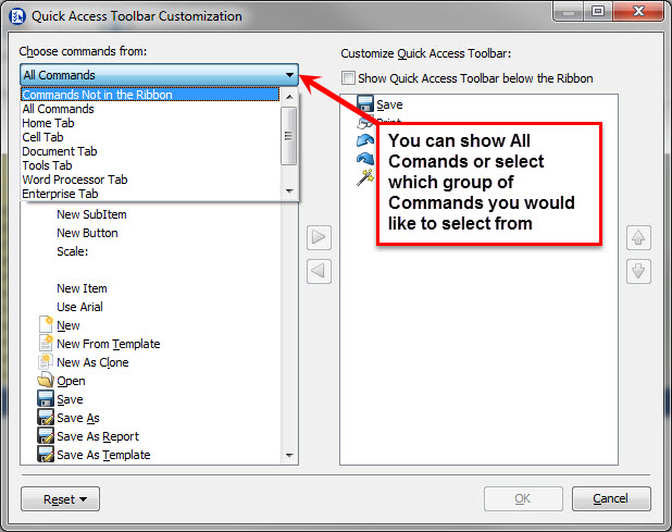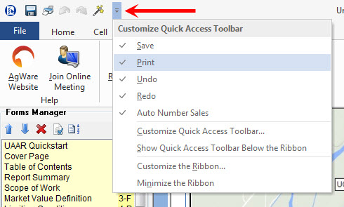 Click its drop-down arrow to see the menu of options and to see a list of currently displayed QAT buttons.