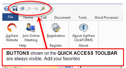 The tool-buttons on the QAT are always in view, no matter which tab on the ribbon is selected.
