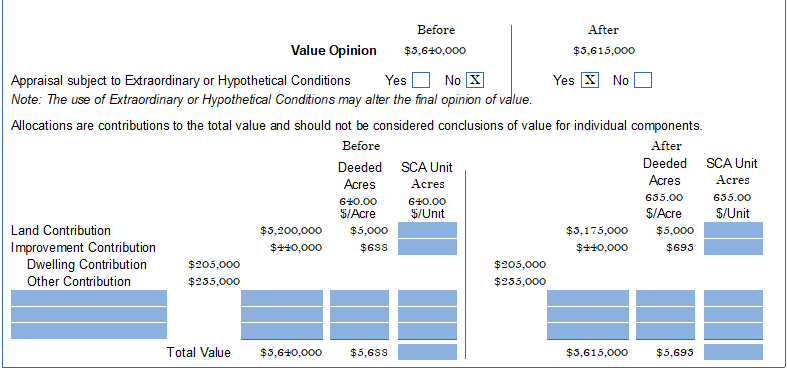 The final opinions of value and allocations are intended to reflect the change between the two situations, i.e., "before v. after" condition.