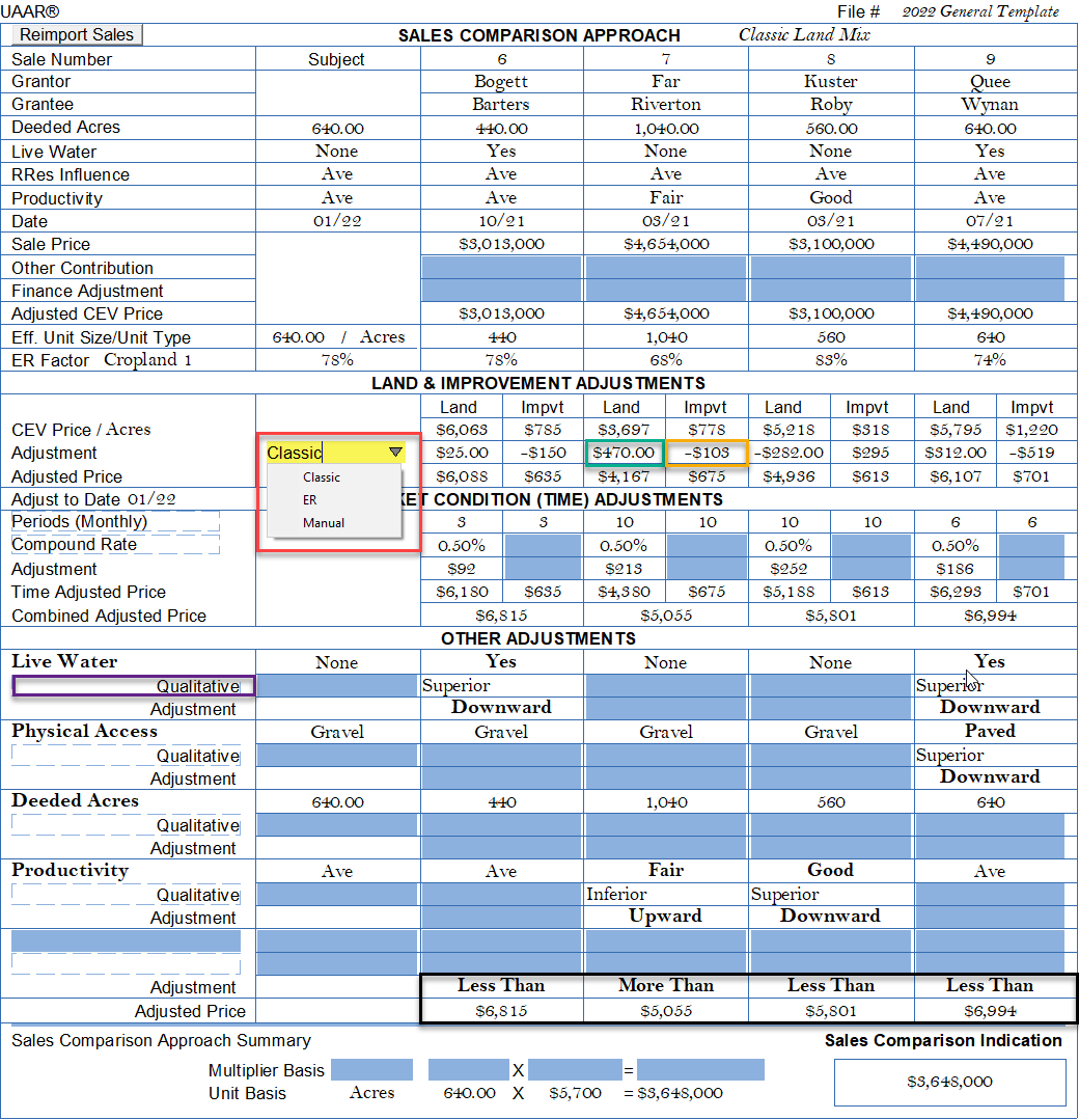 The 2022 Sales Comparison Approach is now MULTI-FUNCTION (see pick-list below within the grid):