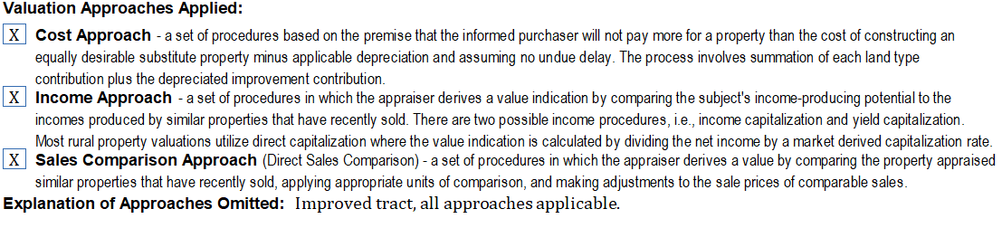 The second section identifies which appraisal approaches were included and reasons for any omissions: