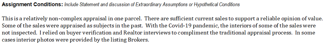 The last section contains a narrative description of any Extraordinary or Hypothetical Conditions.