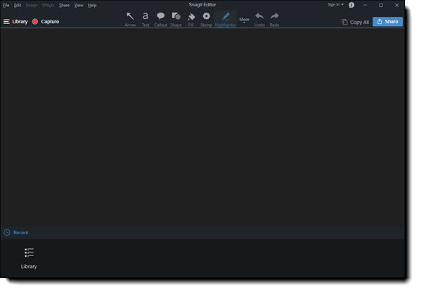 When the Edit with Snagit option is selected, the image will be displayed within the Snagit editing window.