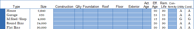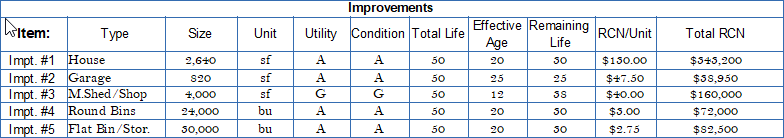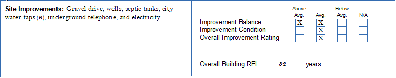 The bottom of the page contains the same elements, improvement rankings, and now auto-calcs the "Overall Building REL" in years. That formula is: each building's contribution X remaining economic life --- summed for all buildings, then divided by the cumulative building contribution = Overall REL.